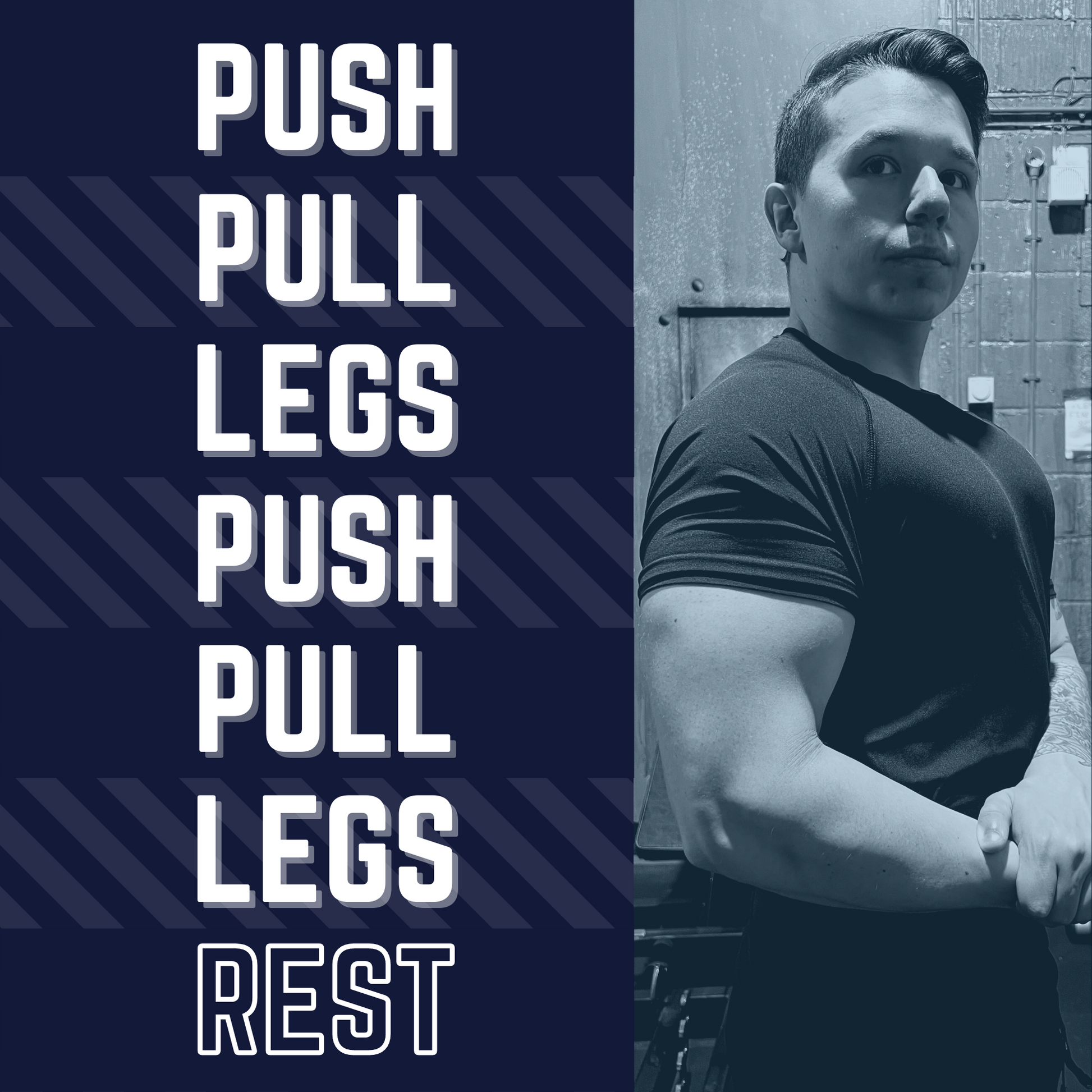 6 day per week split, hitting every body part at least twice per week across 6 sessions. Designed for those who can train 6 days per week or want more training specificity.